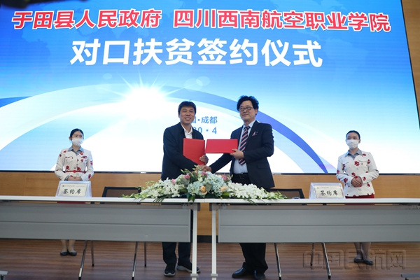 《中国民航网》、中国民航网 记者何丹 报道:4月28日,四川西南航空职业学院与于田县人民政府在成都举行对口扶贫签约仪式,旨在进一步加快新疆维吾尔自治区于田县扶贫攻坚步伐,促进当地教育事业发展。
