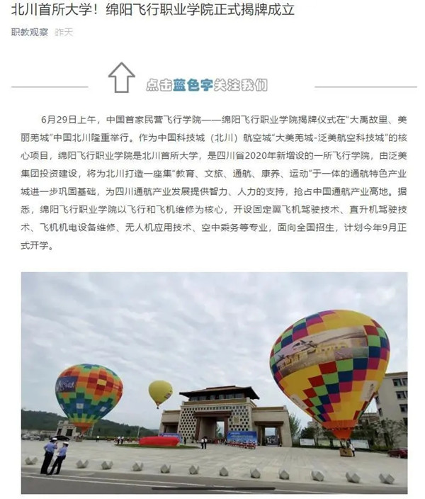 作为中国首家民营飞行学院、北川首所大学