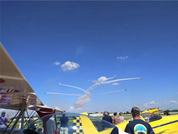 上万架飞机的聚会,数十万人躺在草丛的仰望,满天的飞机穿梭轰鸣,构成了一幅壮观的蓝天诗篇。“可以看出,航空已经是美国人生活的一部分,他们都是自己组装飞机,驾驶自己的飞机来参照航展、露营。整个航展就是飞行爱好者的天堂,在这里他们能找到他们需要的一切。”