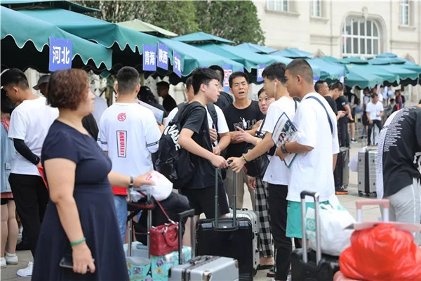 各学院的迎新接待站气氛热烈,学院师生齐上阵,有条不紊地欢迎新生们的到来。初来乍到的陌生感,随着学长学姐、老师的热忱服务而消逝。