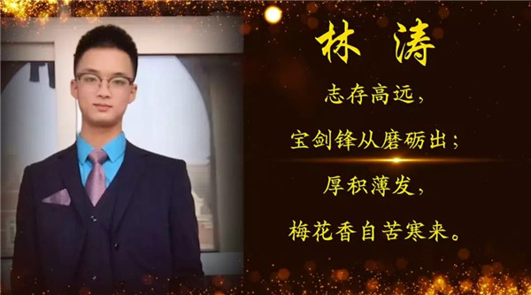 他是专修学院的优秀学生代表。在学习上,他勤学苦练,刻苦钻研专业知识,严格要求自己学好各项专业知识及相关基础知识,他曾担任过区队长、纪律委员、劳动委员,热心帮助同学们解决困难,为参谋长分忧。他还积极参加社会实践,曾在一所高校担任国防教育军事训练中运用了在学校所学的专业知识、本事本领、军事教学,以自身幽默风趣式军事教学深受师生喜欢。他曾数次荣获“优秀实习教官”“优秀班委干部”“军事标兵”等荣誉称号。