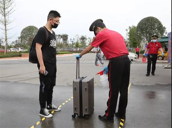 在校门口,安保、防疫工作组严阵以待,对报到新生进行行李消毒、身份确认、健康码、行程卡以及核酸检测报告查验、体温测量与登记等,做好细节,全方位落实防控要求,新生及家长对此也积极配合。