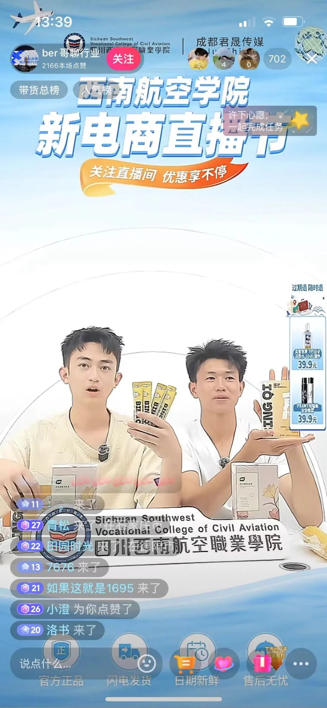 灯光亮起,镜头开启!“3、2、1,上链接!”四川西南航空职业学院新电商直播间内,身着西航制服的主播学子正以专业话术精准引流,身后中控团队以秒级响应操控后台——这不是商业直播间,而是西航新电商带货直播训练营的毕业考核现场。
