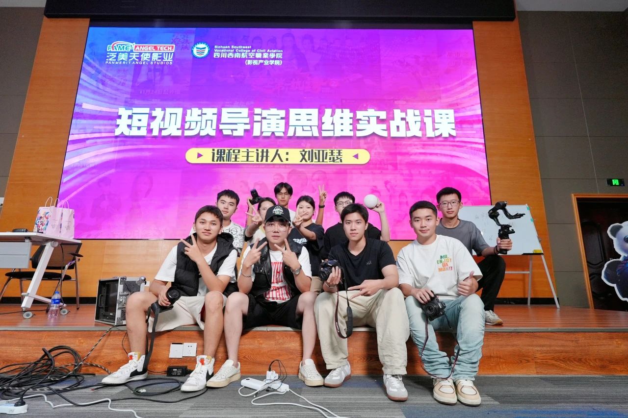 拥抱新时代、开拓新局面,今年7月,泛美天使影业集团联合四川西南航空职业学院影视产业学院共同打造产教融合新赛道,致力于为所有西航学子提供新的舞台以及最新的专业课程和成功机会。此次短视频导演思维实战培训课程,是双方为在校学子打造的福利课程,也是双方整合优质行业资源,紧扣新媒体+互联网新影视+精品短剧培养发展战略,共育影视行业人才的有力实践。不仅培训效果显著,亦为后续搭建更多优质高效的影视技能培训平台打下了基础。
