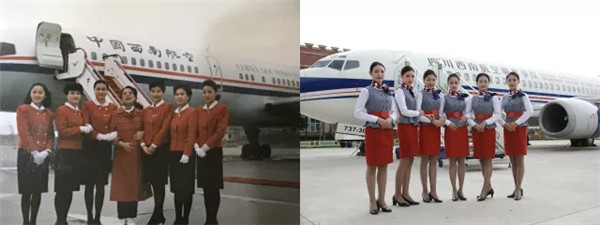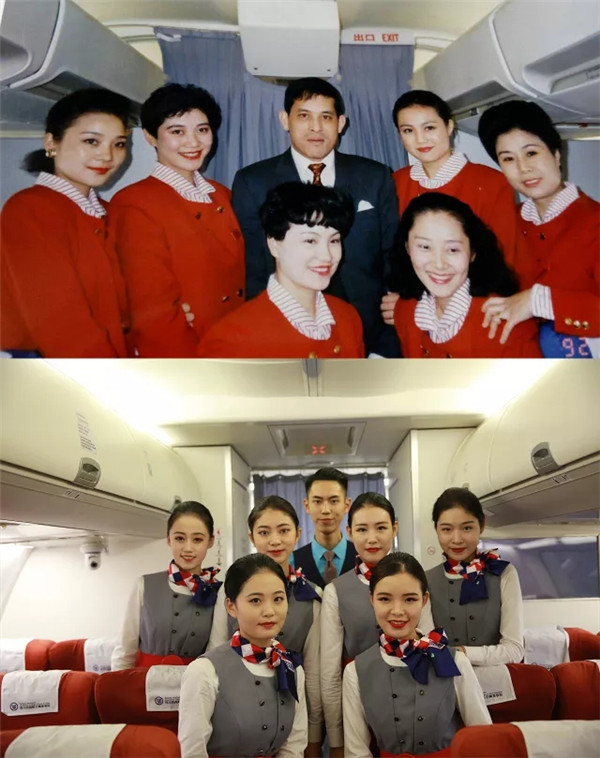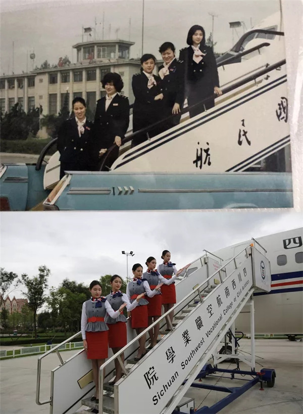 近日,四川西南航空学院的几位“95后”准空姐将自己的照片与“70年代”空姐的照片拼在一起,相同的场景、同样的动作、一样的美丽优雅。从上个世纪70年代到今天,跨越40余年的对比照,透露着民航人对民航精神的传承,同时也反映出我国民航事业的巨大发展。