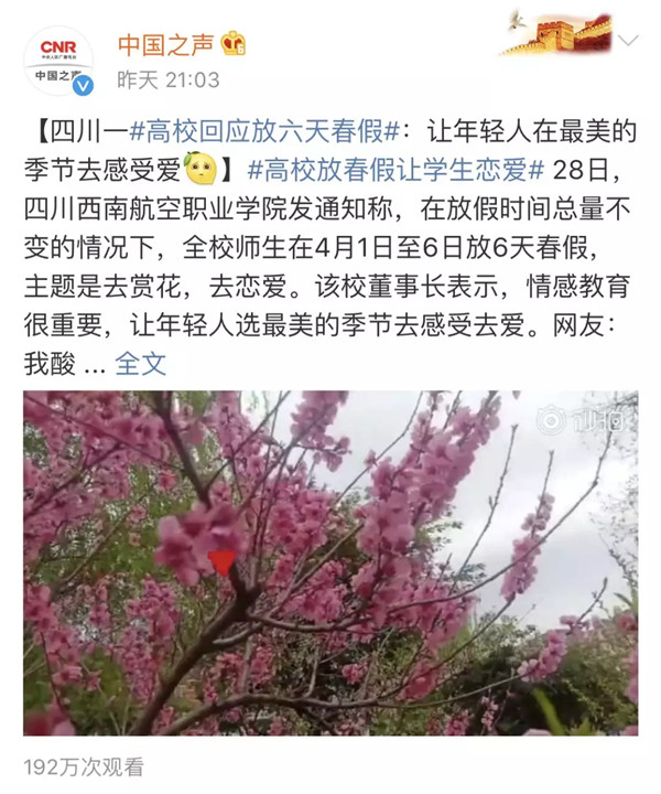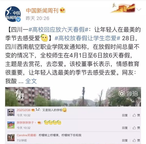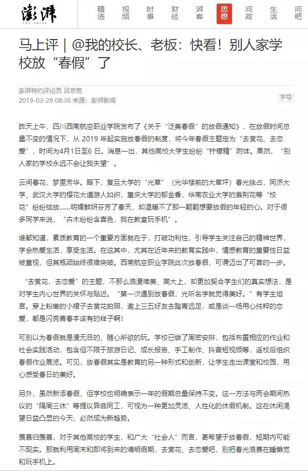 【澎湃评论:马上评|@我的校长、老板:快看!别人家学校放“春假”了】