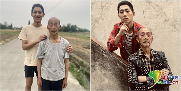 许爷爷对这一身装扮也是十分满意,“没想到老了我还能这么帅”。据许宸滔介绍,爷爷一辈子都在种田,生活很朴素,最开始让爷爷穿上服装他还觉得难为情。“在拍摄的过程中,我一直在逗他笑,教他摆动作。”