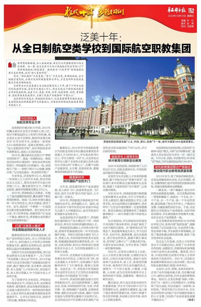2012年至今,除了缔造西南航院外,泛美也将触角伸向全国,先后在绵阳、青岛、安徽等地打造不同类型的民航职业院校,构建全链条教育品牌集群。