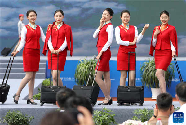 青岛航空科技职业学院学生在揭牌仪式上。