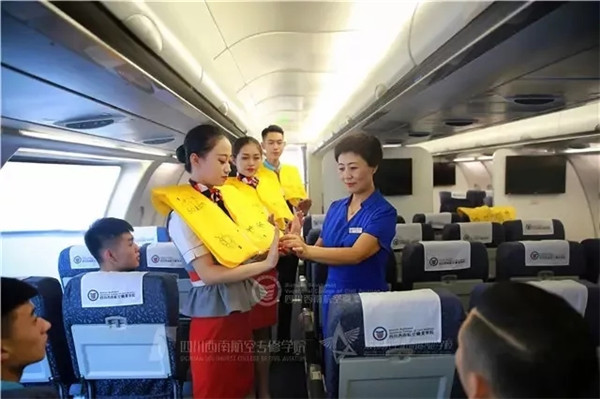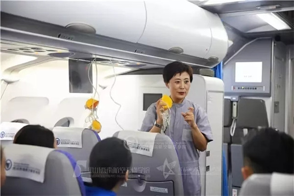 习惯了像师傅带徒弟那样教学的杨路涛,第一次面对几十个学生黑压压地站在自己面前时,还是有一点压力。当他向学生提出第一个问题“你们当中坐过飞机的请举手”时,学生的反应让他暗暗叫苦——全班只有接近一半的学生举起了手。没坐过飞机,就没有对飞机客舱的直观体验,尤其是欠缺“密闭空间感”——这是航空安全员一切工作的心理基础。于是,杨路涛加大了在模拟舱训练的强度,以便学生体会飞机客舱的“密闭空间感”。