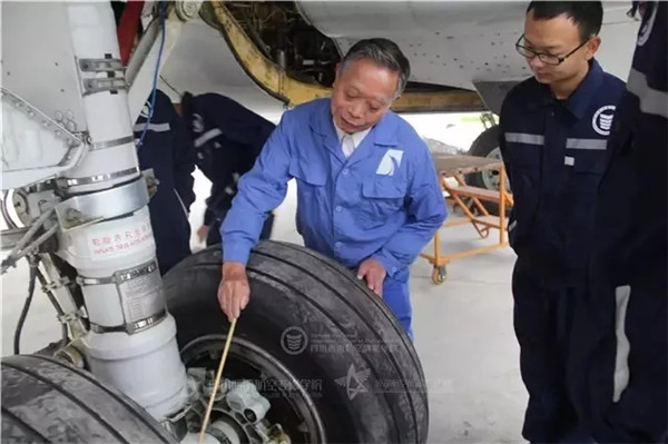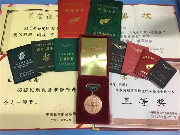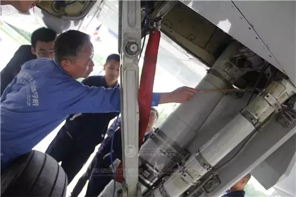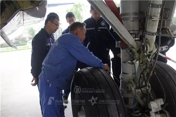 面对笔者的疑问,兰功贤憨厚地笑笑,“我一来到学校,就觉得自己的晚年是属于西航,属于教学的。”2015年4月,学院引进一架B737飞机用于教学。从此,兰功贤的干劲更大了。四川的夏季闷热潮湿,飞机内有空调,但机务工作要在飞机上爬上爬下,不是时时都能在舒适的环境中工作,热一点的地方也是有的。每次给学生上实践课,70多岁的兰功贤都会钻进机舱里亲自示范、指点。一节课下来,他满面通红,花白的头发被汗水浸透,身上的衣服也早已湿透。一些原本想偷懒的学生见到兰老师的认真劲以后,再也不好意思偷懒。