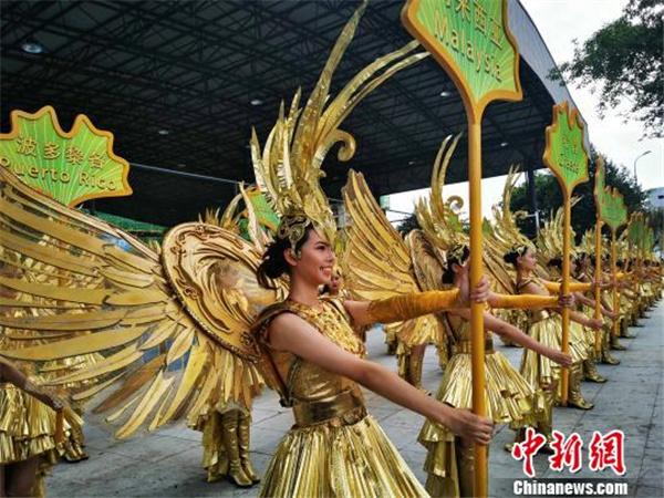 身着“太阳神鸟”服饰亮相的世警会开幕式引导员