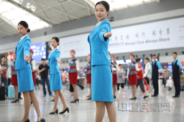 《中国民航报》、中国民航网 记者何丹 报道:5月3日,正值五四青年节到来之际,在成都双流国际机场内,95后准空乘们纷纷穿上80年代空姐服装,通过“青春快闪”,重现中国空乘青春芳华,向中国民航人致敬。