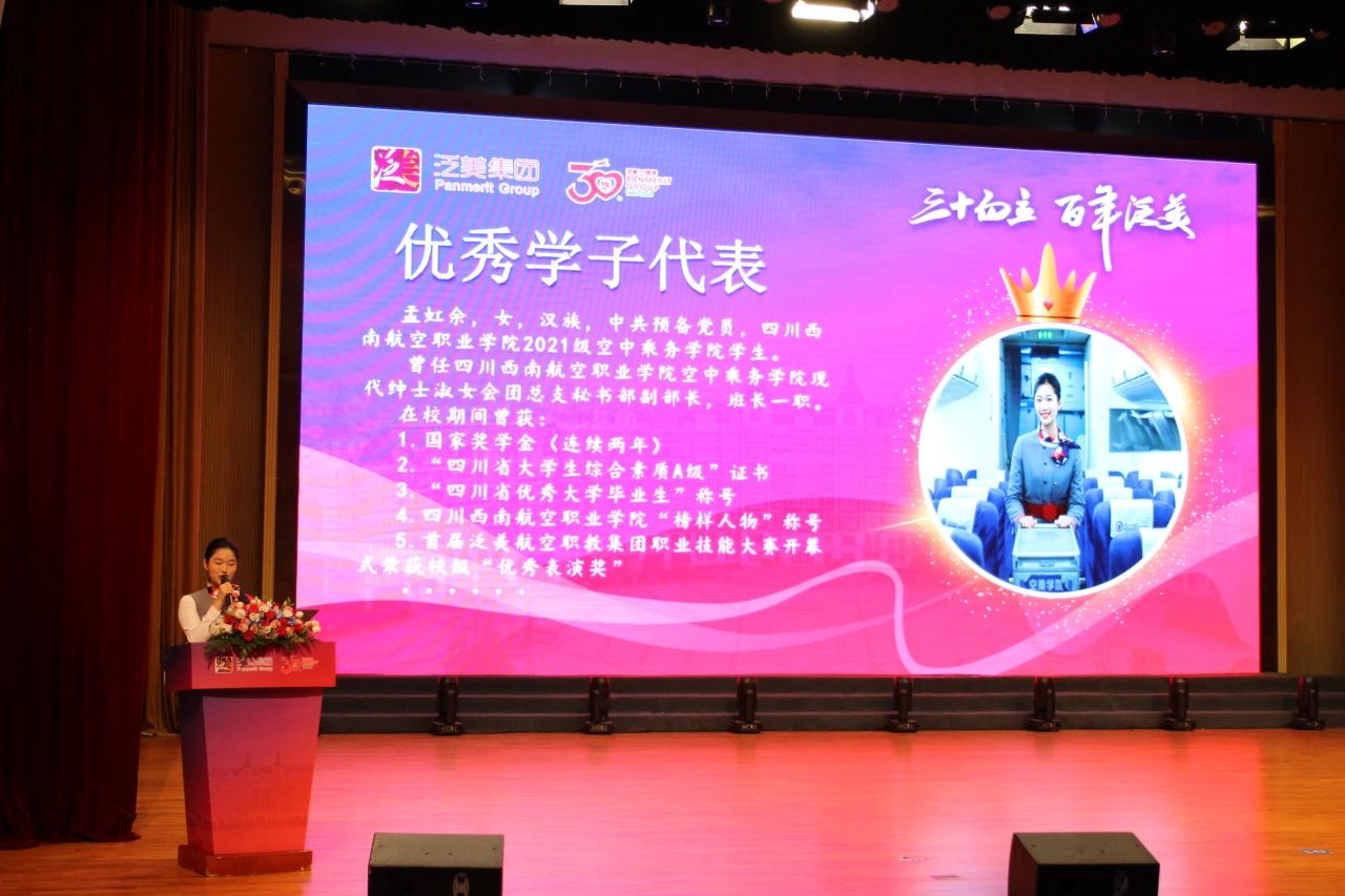 为庆祝泛美成立三十周年,树立优秀典型,引导和激励广大学生立志成才、刻苦学习、奉献社会、报效祖国的优良品质,泛美教育集团开展了“泛美三十周年优秀学子”评选活动,最终评选出300位优秀学子。其中,四川西南航空职业学院、四川西南航空专修学院、成都泛美航空旅游中等职业技术学校共计168名同学获此殊荣。 5月4日上午,泛美三十年·五四青春盛典——300位优秀学子表彰大会隆重举行。师生齐聚,共同见证属于榜样们的荣耀时刻。