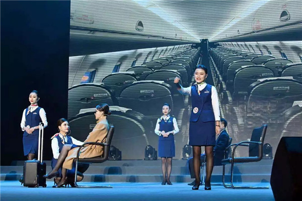 比赛分为预赛和决赛两个阶段,通过初赛的8只队伍在决赛阶段围绕企业文化和公司理念特色进行了团队展示,朗诵、舞蹈……表演方式多样,覆盖内容多,现场反响热烈。在比赛过程中,一个个生动的故事让人感同身受,让大家深刻体会到了作为一名客舱乘务员的责任与担当。