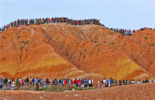 张掖七彩丹霞地貌群以其层理交错、岩壁陡峭、气势磅礴、造型奇特、色彩斑斓而称奇,享有世界十大神奇地理奇观、全球最刻骨铭心的22处风景、全球最美的丹霞等美誉,吸引着国内外游客。据张掖七彩丹霞景区大数据中心统计,10月1日-8日,张掖丹霞景区累计接待游客21.14万人次,同比增长6%;接待总收入1512.9万元,同比增长12%。