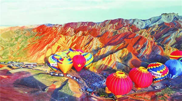 近年来,张掖七彩丹霞景区将低空游览项目作为打造七彩丹霞休闲观光游的重要内容,充分利用空间优势,着力打造低空旅游产业链,通过“旅游+通航”融合体验活动,创新推出直升机、动力三角翼、热气球、驼队观光、VR体验等旅游产品,不断打造优质文化旅游名片,开发出直升机观光、热气球自由飞、动力伞亲自飞等低空旅游综合体验产品,七彩丹霞低空旅游体验区品牌已初步形成。