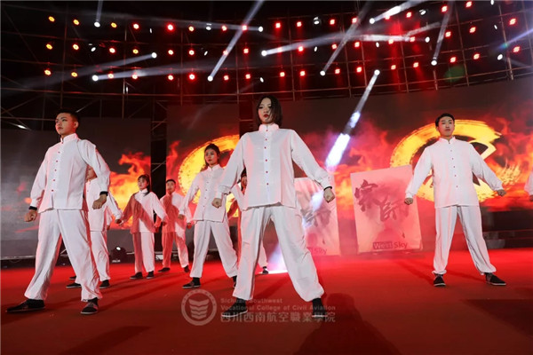 在西航,一个个精彩节目登上舞台,震撼全场。一曲《龙翔九天》,散发出浓厚的中国味道,舞龙,甩袖,跳跃,每一个动作都是精心设计的巧妙,令人移不开眼。在如此的别开生面开场后,相声、情景剧、现代舞、街舞……接踵而至,嗨翻全场。