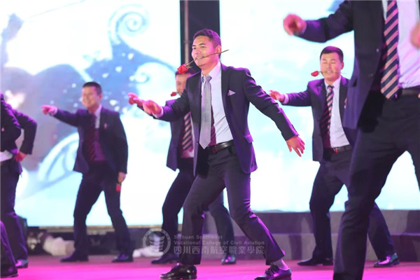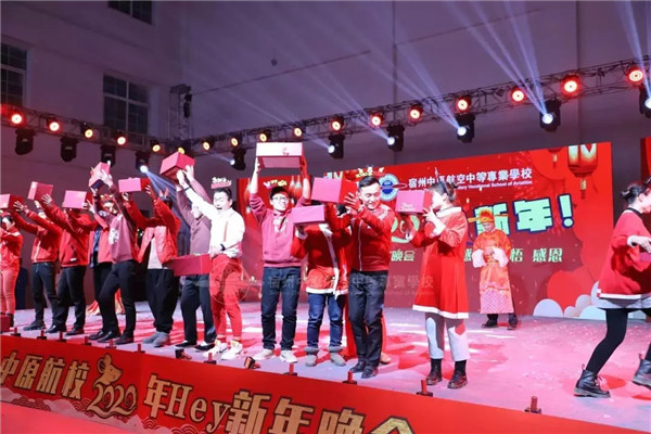 晚会互动环节以及颁奖仪式也精彩纷呈。宿州中原航空中等专业学校校长杜政先生与副校长段玉超先生分别化身圣诞老人与财神爷,与学校老师教官共舞。随后,老师们为现场同学分发小礼物,将欢乐与甜蜜洒满晚会现场!