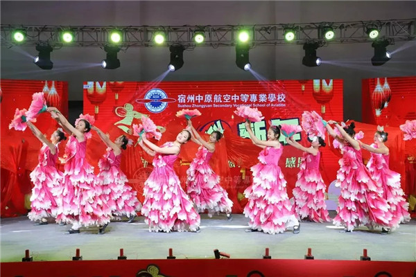 宿州中原航空中等专业学校首届新年晚会如期举行,众多精彩节目亮相,惊艳全场。喜庆洋洋的音乐声、热情的舞动、独具匠心的设计,带给观众不一样的视觉冲击和艺术感受。