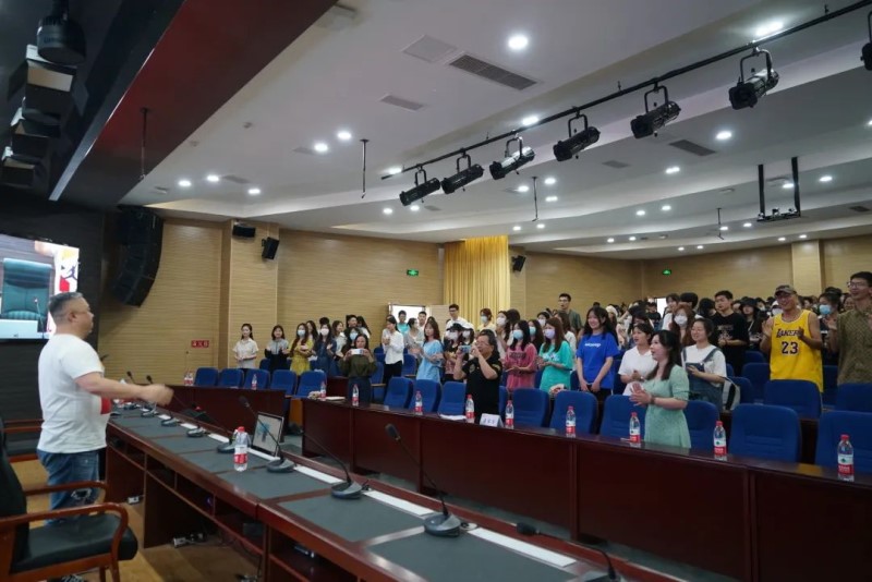讲座最后,魏全斌先生寄语绵师学子“教育的本质是大爱,教育的终极目标是沟通,用我们崇尚的教育改变我们的学生和我们自己”,还与全场师生一起合唱一曲《蓝莲花》。