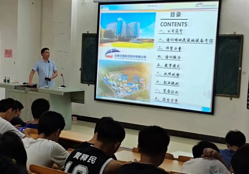 会后,云南泛美航空技术有限公司为学院航空工程及无人机专业学生组织了宣讲。公司质量部经理张毕武像学员详细说明了民用航空器维修人员执照考试的相关内容,同时针对机务维修行业体系及发展前景进行了介绍。