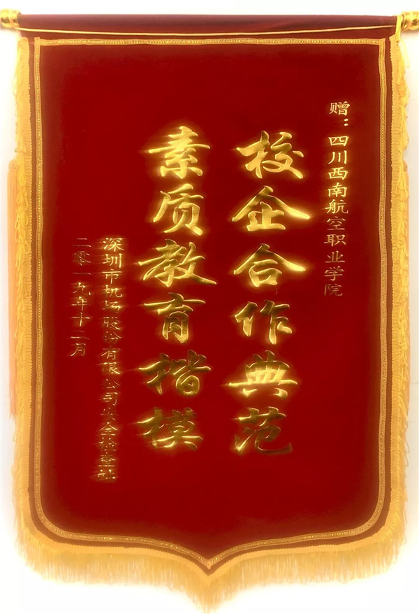 近日,泛美教育集团旗下四川西南航空职业学院收到了来自深圳市机场股份有限公司安全检查站(以下简称“深圳机场安检站”)的一份特殊的礼物——一面写有“校企合作典范、素质教育楷模”的锦旗,这是学院与深圳机场安检站长期合作的最好写照,学院也将与深圳机场安检站在合作共享中继续探索校企深度融合之路,为民航人才培养、为中国建设民航强国做贡献。