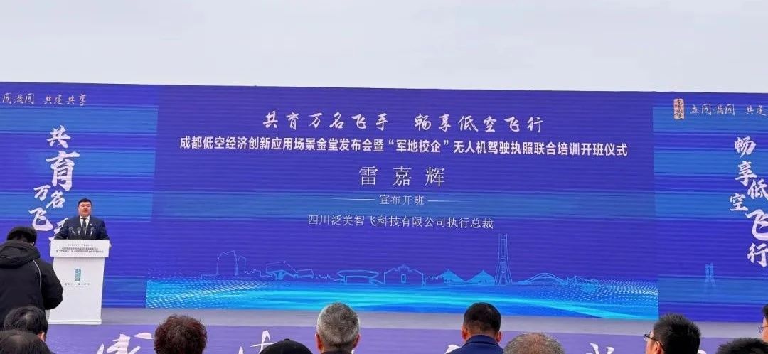 活动最后,泛美智飞科技有限公司执行总裁雷嘉辉宣布:“金堂县军地校企无人机驾驶执照联合培训,开班!”。全国首个“军地校企”无人机飞手培训示范班,将进一步带动基干民兵队伍和应急消防、电力通讯、农林植保等行业系统的无人机操控骨干人才培养。