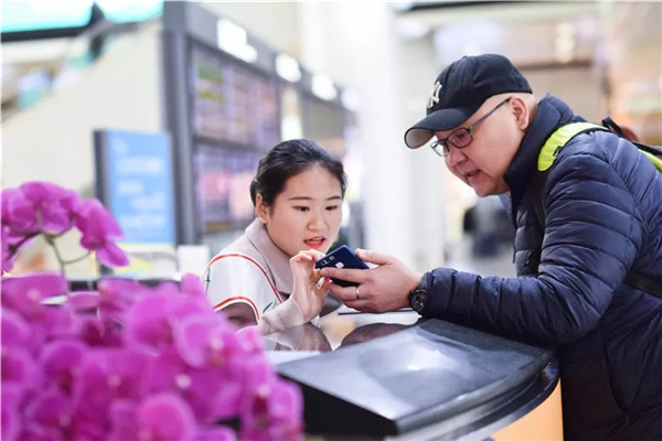 “够帮助出行的客人们,做些力所能及的事,会有一种使命感、欣慰感。用爱传递温暖、用情传递幸福,感恩相伴,并肩前行,2019继续加油!”