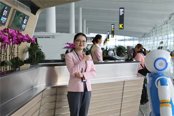 广州白云国际机场是国内三大航空枢纽之一,每日人流量非常大。在人来人往的航站楼里,作为一名高度职业化的民航员工,服务的西航学子们精神抖擞,身穿标准的职业装,宛如像初升的太阳,温暖着每个过往的旅客。