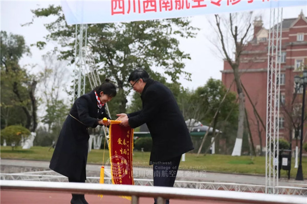 一个特别的环节在此上演,曾经因肺炎而受到学院师生帮助的无人机专业简琪祥极其家人送来了一面锦旗,让班主任代转达了对于学院的感谢。 在接下来的送祝福环节,四川西南航空职业学院领导与各二级学院的老师们齐上阵,表演形式多样,精彩纷呈,瞬间点燃现场激情,他们用最走心的节目表演为即将离校的西航学子们送行。