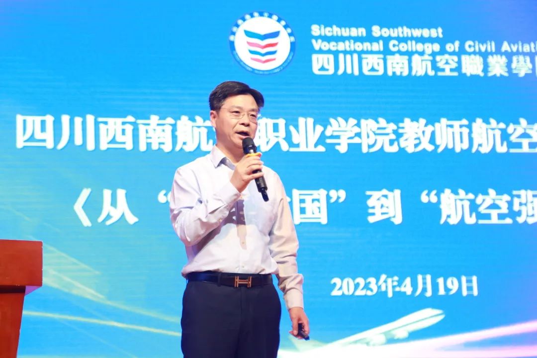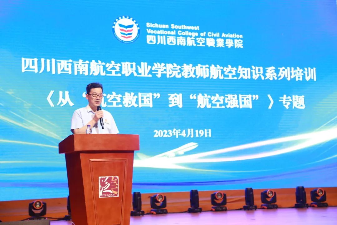 讲座开始前,四川西南航空职业学院党委书记岳文喜对此次培训的主题、主讲嘉宾等进行了简要介绍,强调了新中国航空发展的历史印记是中国航空人薪火相传、继往开来的不竭动力,更是一笔宝贵的精神财富,有益于参培教师从中汲取智慧和力量,对传承航空精神,培养民航人才具有重要意义。
