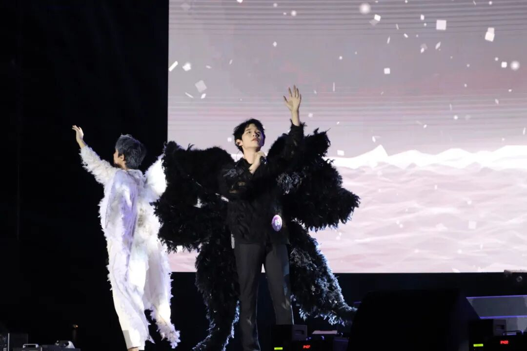夜幕璀璨下,一曲接着一曲,台上的选手们燃爆全场,台下的观众们激情四射,尖叫声、呐喊声、助威声、欢呼声不绝于耳,挥舞着手中的荧光棒,以梦幻又热烈的方式,汇聚成星河,为支持的选手加油助威。