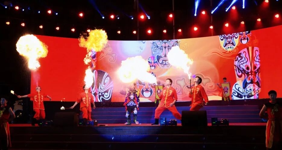 现代舞、街舞与武术巧妙结合,开场便是气势磅礴、心潮澎湃,掀起热浪。随即川剧变脸大师的一个转身——红黄蓝三色脸谱瞬息万变,最后以一道烈焰吐火惊艳收场!
