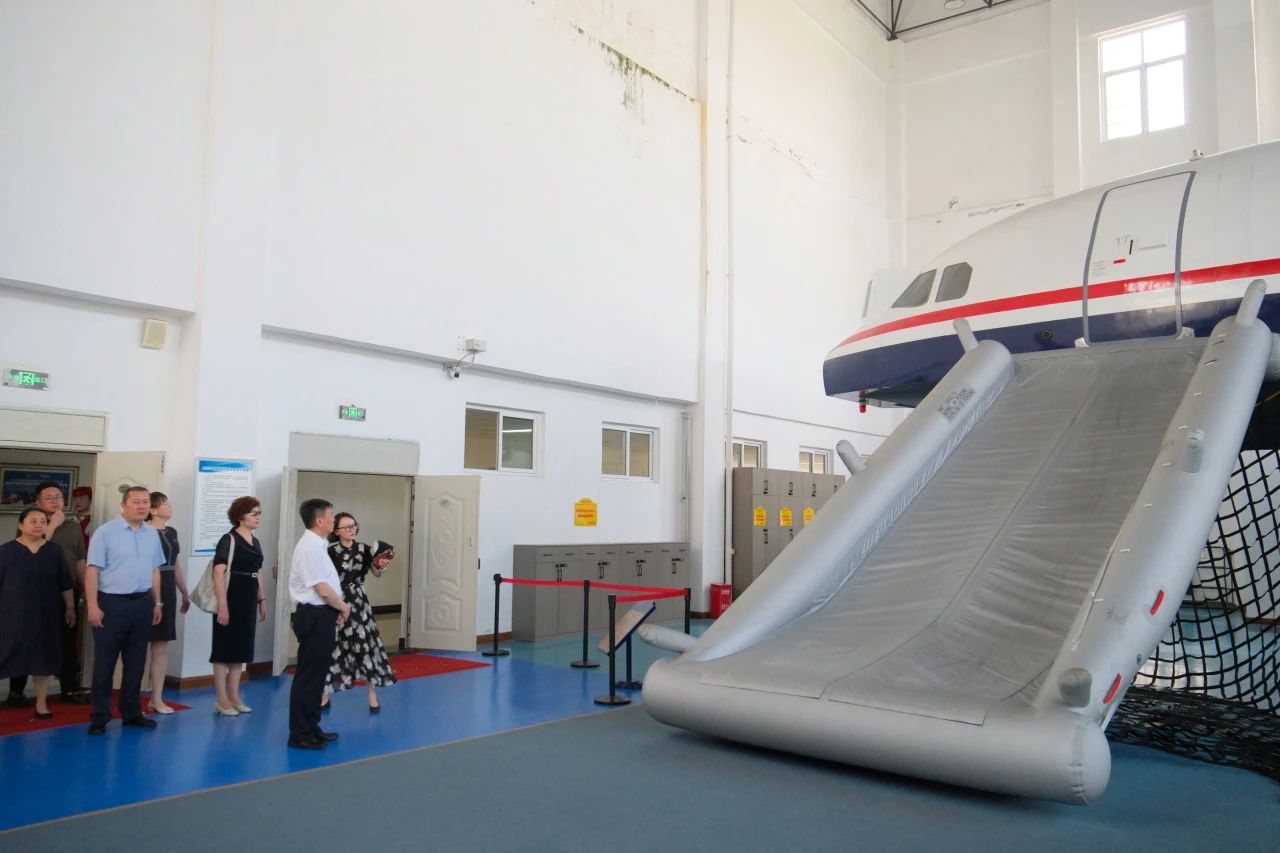 抵达后,乌鲁木齐职业大学党委书记唐晓冰一行参观了凯旋门、太阳广场等校园特色建筑,实地考察了无人机、空中乘务、安检、机务、消防救援技术等专业的实习实训情况,考察了西航直播学院的实践运行,沉浸式体验集团产教融合办学特色和成效,感受集团一体两翼战略下雄厚办学实力。