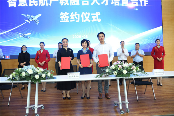 6月23日上午,泛美教育集团与中国航信西南凯亚、IEEAC云专业委员会举行智慧民航产教融合人才培育合作签约仪式。根据《协议》内容,三方将综合教学优势、平台优势,构建产教融合、校企协同合作发展的新模式,在智慧民航研究、智慧民航课程建设、智慧民航1+X证书开发、智慧民航双师型教师培育等方面共同助力,培养高素质复合型民航专业人才。